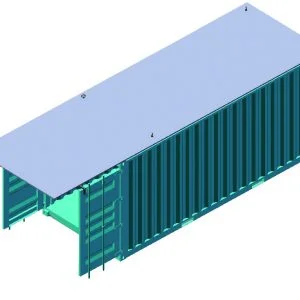 El techo del contenedor es blindado con una placa de acero de 2,4 m. x 8 m. Esto ofrece protección contra morteros de 120 mm (o más, si fuese requerido).