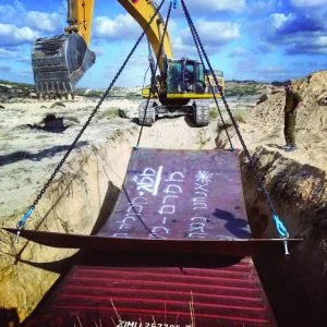 Dependiendo del nivel de la amenaza, las condiciones del suelo, las limitaciones y la disponibilidad de los equipos, el contenedor podrá ser enterrado bajo tierra o cubierto con tierra sobre la superficie y luego protegido con una pared.
