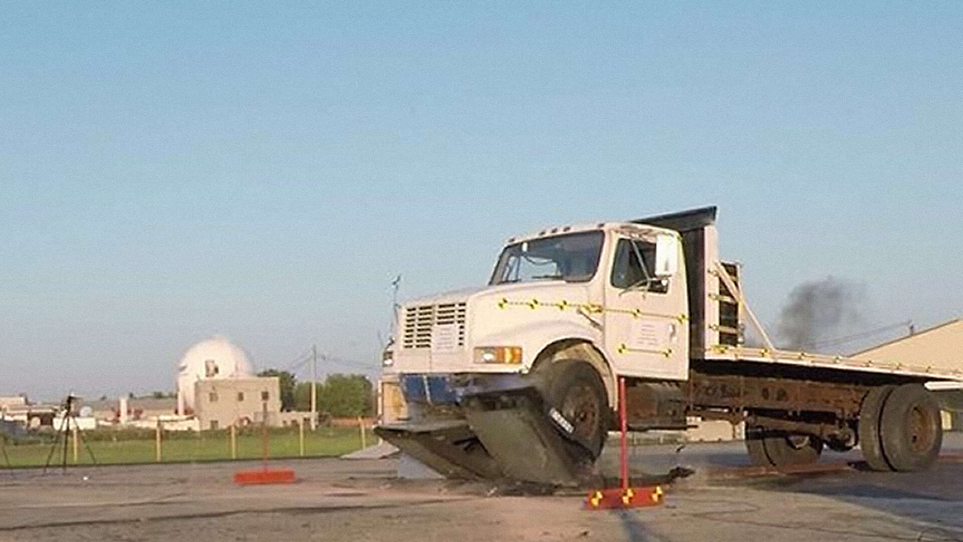 La primera barrera bidireccional del mundo. Conduzca sobre una barrera doblada, contra vehículos pesados.